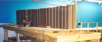 | Checking track alignment under the 610 Loop in Houston | Checking placement of Igloo's Brookshire Plant with paint cans for silos! |