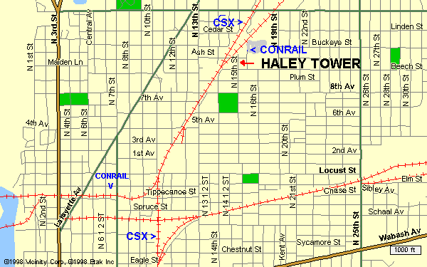 Amtrak depot and train yard. Do stay off the tracks. locomotive and car shopes north of the Amtrak depot. | Wide View Map of Topeka | 161.145 (AAR 69) Topeka subdivision |