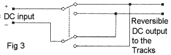 | Keep it small Use individual small silicon power rectifier diodes to construct your four-diode bridge, rather than a fixed form-factor pre-wired rectifier unit which is typically made of an epoxy casting and is much larger. The diodes are garden variety silicon power types available from Radio Shack and catalog sources such as Digi-Key or Mouser. 1N4001 or 1N4002 types are fine. Place the diodes on your workbench and physically lay them out side by side with short leads. Plan ahead with an eye towards where they will sit inside the handcar housing. Observe the polarity markings on the diodes. The cathodes are banded--usually with a white stripe. The end without a stripe is called an anode. Silicon diodes are VERY heat resistant, so there's no need to worry about destroying them during soldering, although it pays to work quickly in any case. You don't need to use pliers or heat sink clamps though. Once the little "network" of diodes is soldered together, you can flex it as needed to make it fit near the motor. Use folds of tape as insulation, or heat shrink tubing. There's no bulky circuit board or mounting plate. There's no room for one inside the handcar! The diodes are supported by their leads. One wheel's pickup wire goes to the field. The other rail pickup wire goes to the point on the bridge where one cathode (marked end) and one anode (unmarked end of a diode) meet. The other side of the bridge (one marked diode end, one unmarked) gets wired to the other side of the field coil. The "+" side of the bridge (two cathodes) goes to one side of the armature. The "-" side of the bridge (two anodes) goes to the other side of the armature. That's all there is to it. Follow the wiring diagram. It doesn't matter which end of the armature you choose. The diodes steer the field current while the armature current direction stays the same---and---voila!-----you can reverse the direction. I was delighted to see my little handcar come alive and run in reverse or forward---after all these years---with modern solid-state electronics aboard! Good luck. Have fun! If you have questions, you can reach me by e-mail at <alex.ai2q@worldnet.att.net>. -- Alex Mendelsohn .-.-. |