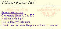 | Links Page - Use this page to find 'S' related sites all over the internet. Let me know if I missed your favorite. | Navigation Page - Use this page to explore the pages that are part of the S-Trains website. | FAQ -Frequently