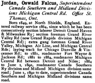 The article below, from The Biographical Directory of the Railway Officials of America - 1893; outlines Jordan's career very well through his life. Jordan started to build his railway spreaders circa 1890. His first patent was issued on May 10, 1891, issued to himself and Robert Potts.