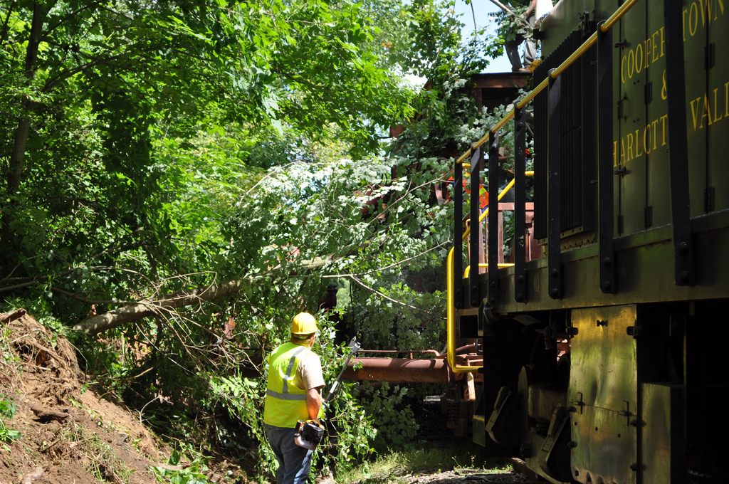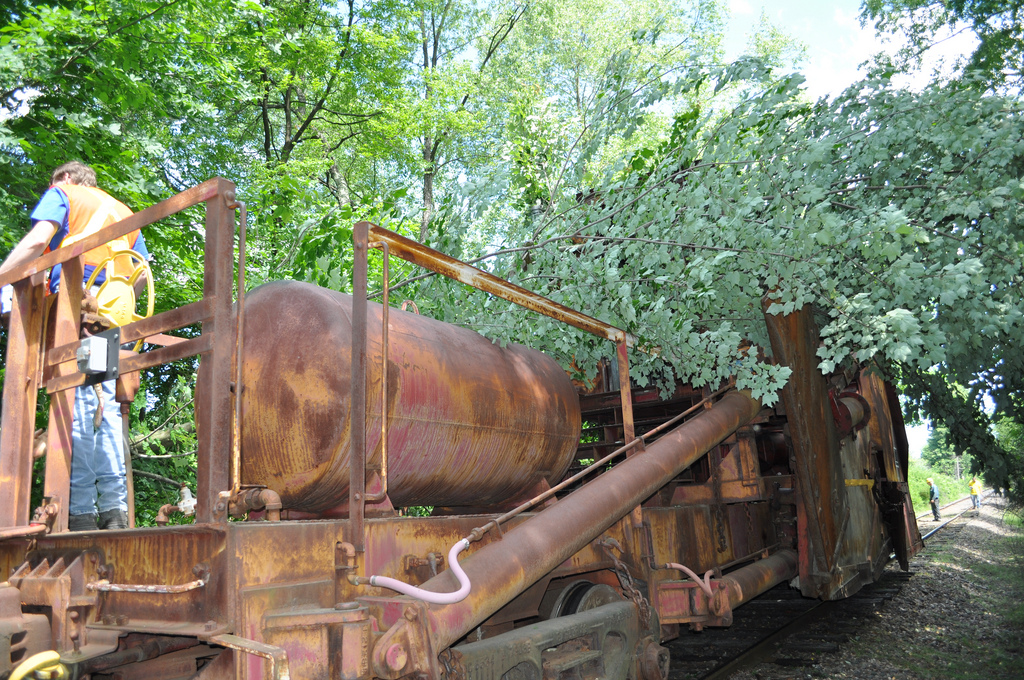 In June of 2012, Website partner Jim Otto got the chance to ride along with the Cooperstown and Charlotte Valley Railroad, owners of a Jordan 2-200. This machine, formerly the Delaware and Hudson 35056, built in 1956, serial number 1156. CACV uses this machine fairly often for keeping there own right of way clear. Below are photos of one such trip.