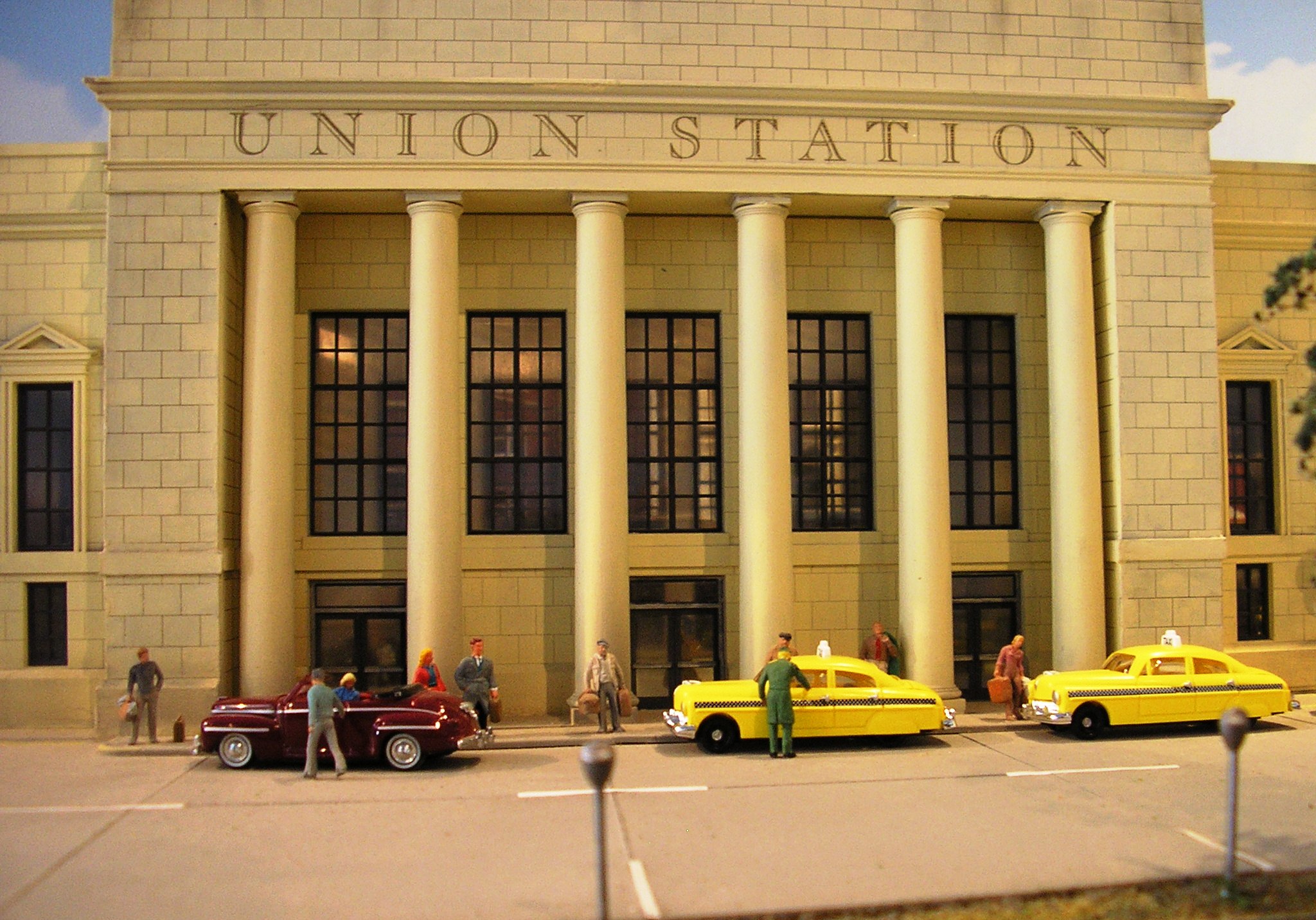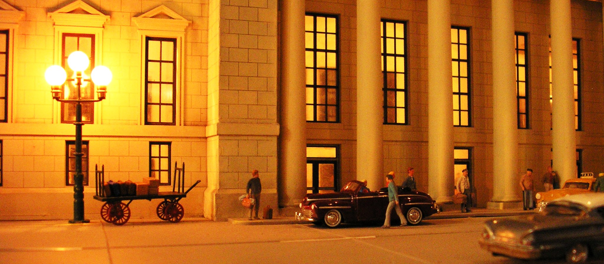 It's night time at Union Station, the passengers are arriving for their overnight trains while some are waiting to be picked up. The luggage has been loaded-up in the baggage cart, there is the smell of diesel and steam in the air, and the passengers are anxious to board into their Pullman cars.