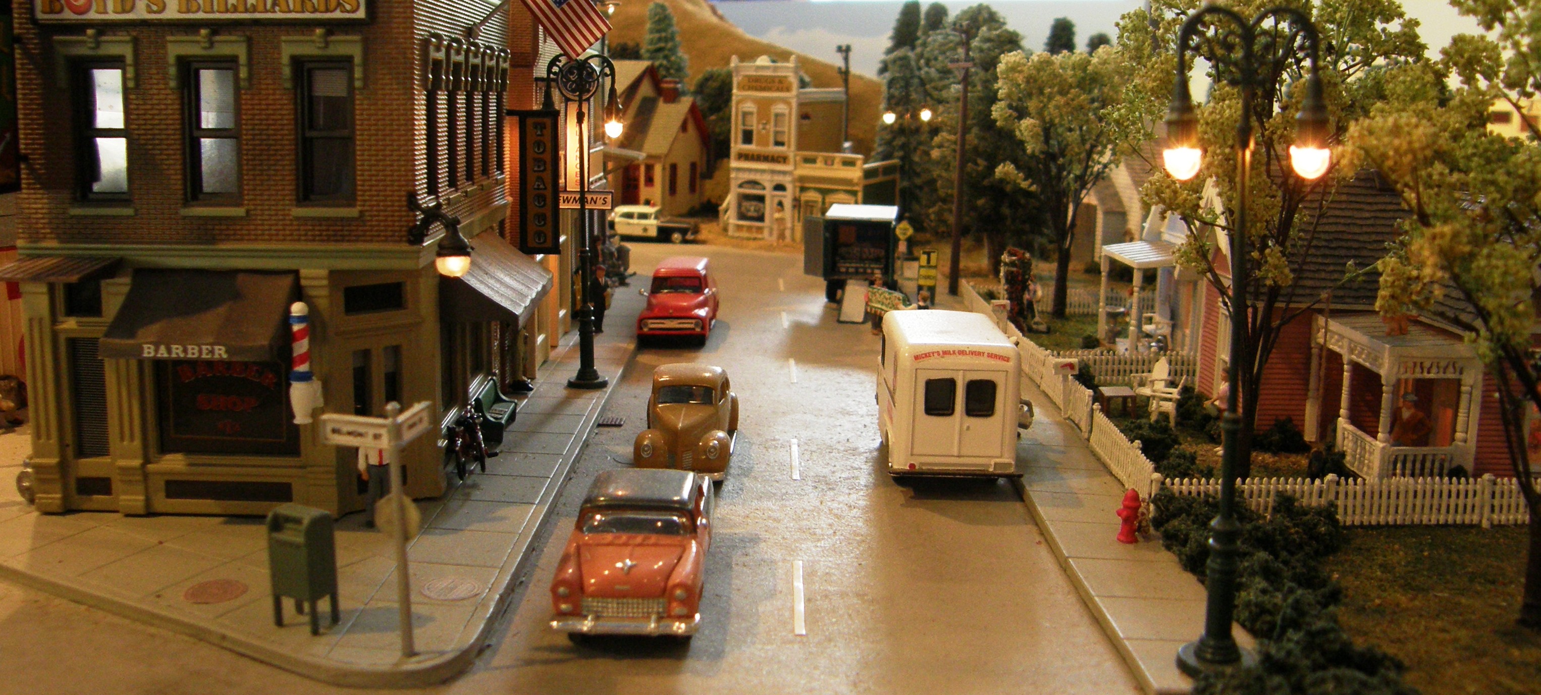 It's early evening in the corner of Main Street and Belmont in the small town of Santa Ana. The street lights have just come on and many of the small businesses on Main Street are now closed. The milkman is trying to finish his rounds, while two furniture movers are also trying to make their last delivery before it gets really dark.