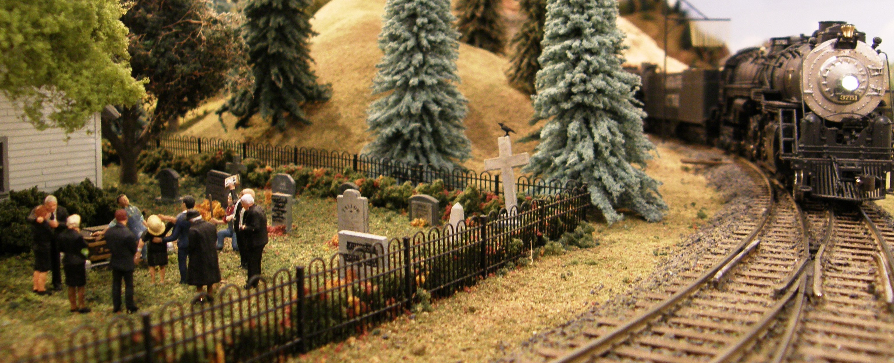 A funeral is being held in the small cemetery behind the small church for Mr. Hightower, a former yardmaster. The widow wails in grief, while all the sudden the ground shakes and a Santa Fe 4-8-4 sounds its whistle and makes its presence known. For a moment, the funeral attendees wonder if this train is being summoned from the heavens by the dearly departed yardmaster or if he will even wake up!!