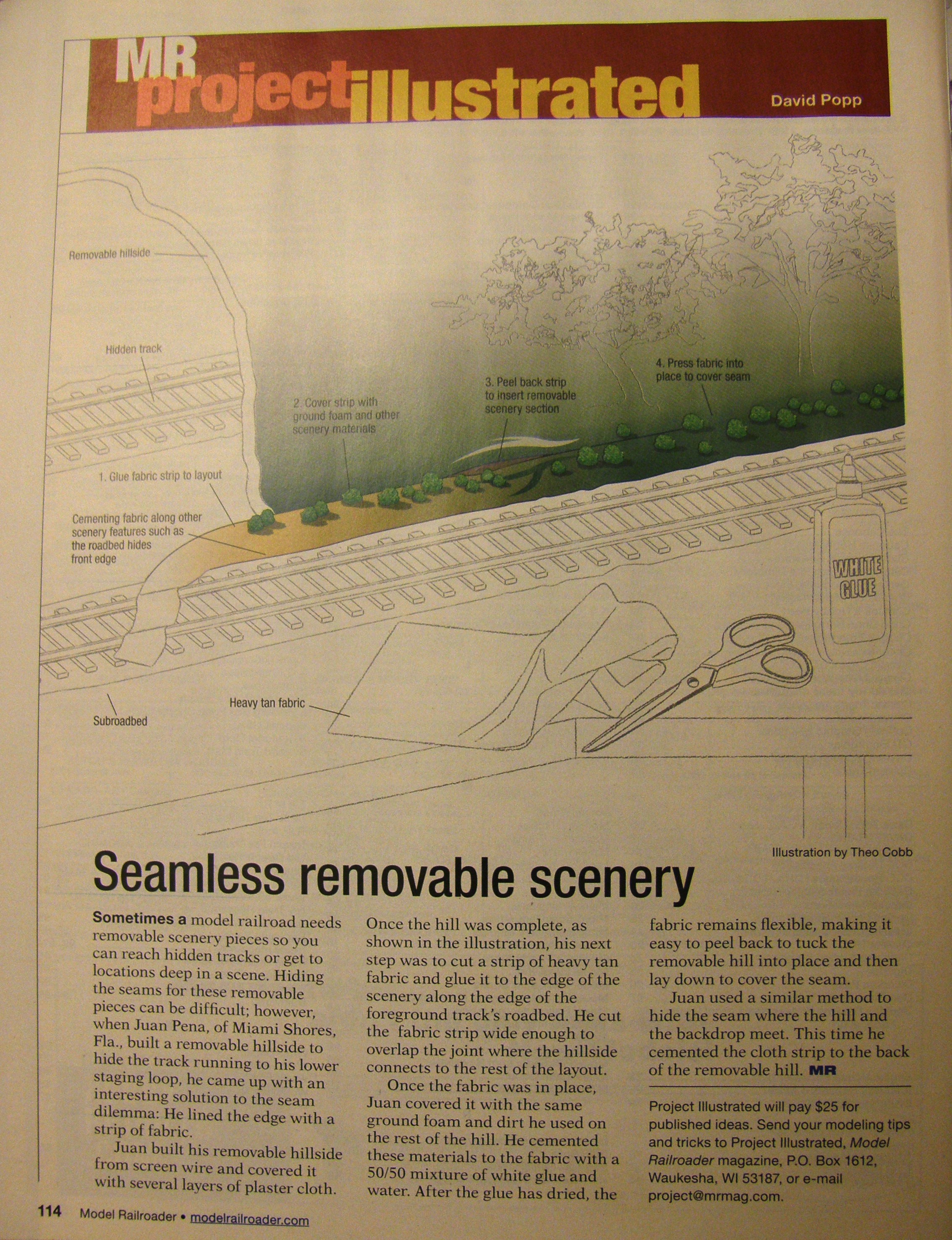 As shown below, my removable mountain idea was feature in the September 2006 issue of Model Railroader "MR Project Illustrated."
