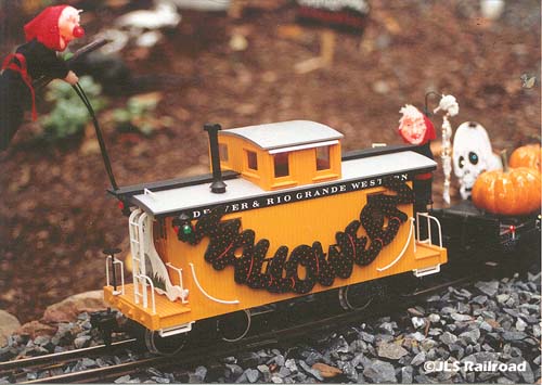 Caboose with witch on her broom taking up the rear