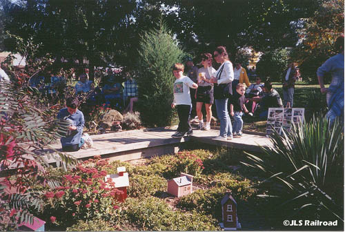 The Long Island Garden Railway Society sets up a layout at the Pumpkin Fest every year. This layout is always a big attraction at the fair. The following are some photos taken at the 1999 Pumpkin Fest.