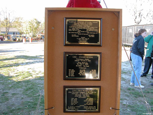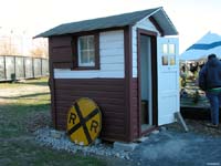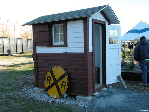 On November 15, 2003, the Long Island Garden Railway Society was present at the Railroad Museum of Long Island's dedication of its newly refurbished Long Island Railroad Railroad Crossing Shanty. The following are photos from the event...