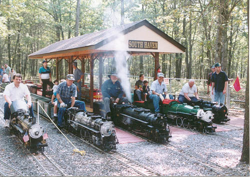 The Long Island Live Steamers have existed since 1966 in South Haven County Park on Long Island, New York. We are located in a heavily wooded, 8.5 acres of the park which normally would go totally unused. Our club is comprised of about 150 members, all sharing one common interest: we are all obsessed with trains. The layout first started out as a single loop of track, we didn't get many visitors then. Now, we have grown into a large layout of 3500' of track! On many of our run weekends it isn't uncommon to find in upwards of 1000 to 1500 people riding the rails! Now, that might seem like a lot of people, but remember, we have many trains running, so don't let the numbers deter you from coming out. We also have a small Kiosk where you can buy snacks and ice cold drinks. At the present time, we are growing in popularity so quickly, we are beginning to realize expansion is a necessity. For the past few years, we have thought of nothing else. There have been many projects in the interim though: we have redone our entire electrical system, rebuilt the kiosk and have plans of reequipping the machine shop. Expansion is a necessity though. We have so many people come out on a given run day, that we need more track to space the trains out! Traffic jams are becoming more and more frequent. Expansion will not only allow us to increase the volume of people we give rides to, it will also greatly increase the volume of people going to South Haven County Park. Everyone would benefit here, especially the children (they'd get to see more trains, always a plus!). I will keep you apprised as to the expansion plans as they come up.