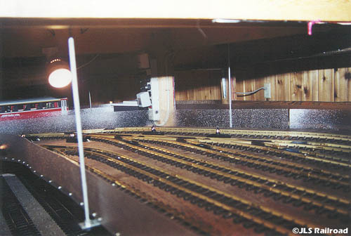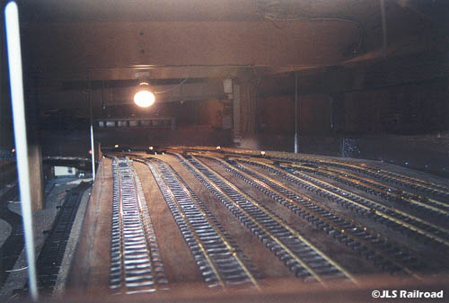 The following photos illustrate the Completed Hanging Yard. Initial planning stages began way back in December of 2000, with actual construction beginning June of 2001. Due to the lack of scenery (the M-Yard is a functional storage yard rather then a prototypical model like the H-Yard), work proceeded fairly quickly, especially with the help of Skip Densing, a fellow member of the JLS Railroad. Although no where near as complex as the H-Yard, construction took the better part of 3 months, finally being completed Thursday, August 23, 2001.