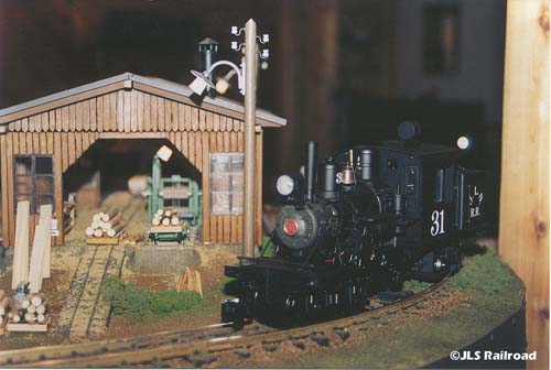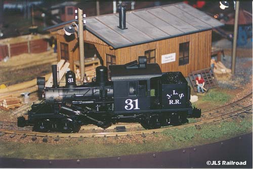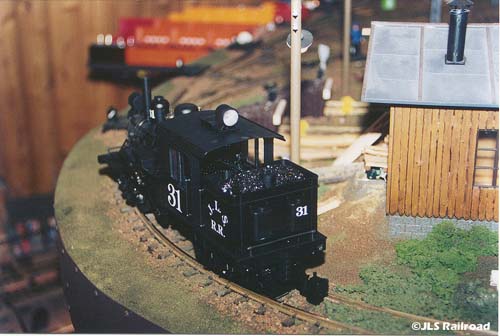 I am a member of the Large Scale OnLine, or LSOL. I have been frequenting the LSOL website for about 3 years now, never having been a member. I finally got around to sending in my membership in June, knowing nothing about any contest to win a BachMann Climax with your own custom logo! Well, 2 weeks later, 2 WEEKS, I receive a letter stating I had won a Climax. Well, like all people who win something (unless they are overly gullible), I said something to the effect of "I'll believe it when I see it". Then BachMann contacted me, I knew it was real at that point. Over the next few weeks, we came up with the logo for the JLS Railroad to be placed on the side of the Climax, and the engine number: 31 (my 31st engine, click here for the JLS Railroad Motive Power Roster). About a month and a half later, after first having been notified I had won, the Climax arrives on my doorstep. Here it is....