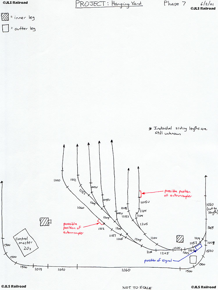 A detailed track diagram detailing possible positions of Autouncouplers and the signal.