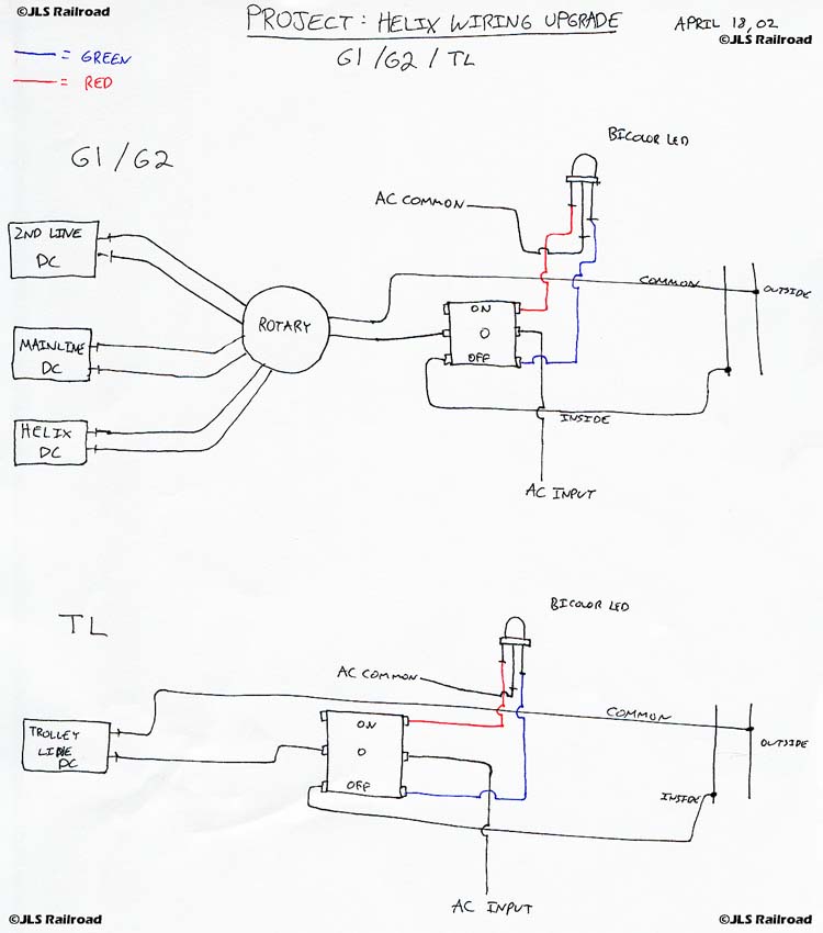 The electrical schematic of the G1, newly created G2, as well as the Trolley Line Blocks...