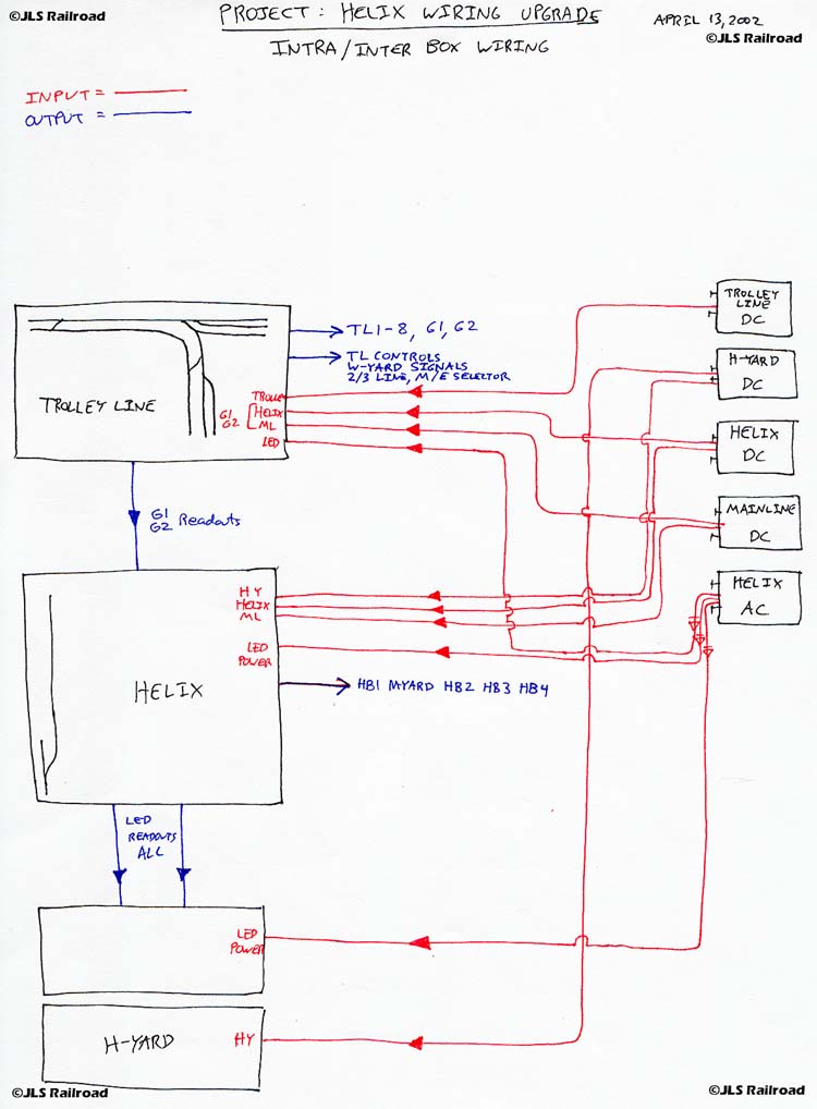 The intra-box wiring system. Basically, this schematic depicts the wiring system created conecting the main panels together for synchronous readout of block status...
