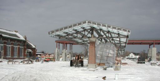 Successive stages of requesting proposals, determining worthy bidders, waiting for funding and approval, then contract bidding and letting followed. By March, 2003 the paperwork and cogitating were almost over and the first signs of progress appeared -- as demolition of several structures, including the half-century old postal annex. Late in 2003, Wisconsin DOT reaffirmed its commitment to significantly fund renovation of the historic building.