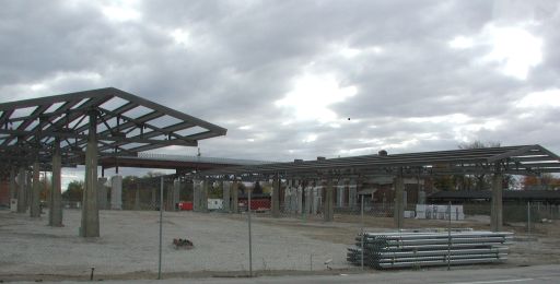 As gray steel framewwork and clouded gray skies prevailed at the site in late October, 2003, the chill of winter is becoming palpable. Its slippery snows and frosty work days plainly imminent.