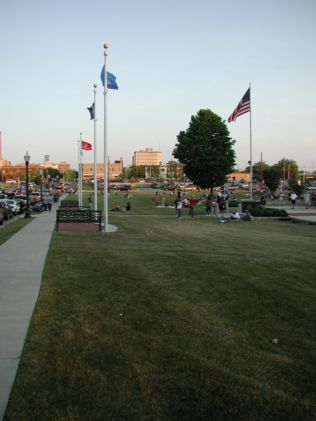 Flags flying at Navy Park, overlooking the harbor beside the Municipal Building, display some of the tribute and respect paid to the Founding Fathers on this Independence Day.