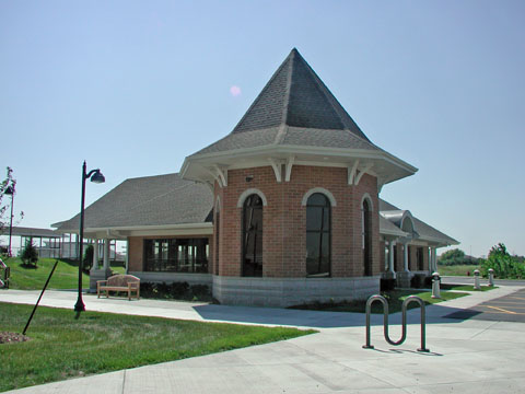 | . Fifty weeks after Mister Gunn passed by the location at CP Rail MP 63, a new station was complete and on August 12, 2006 dedicated for use to begin two days later on Monday, Aug. 14. Click on image below for a video of the first train leaving the new station enroute to Milwaukee. |