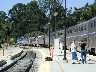 (64K) Looking south at SLO down the long train (5 coaches). Les Higa is taking a photo of the head-end power. |
