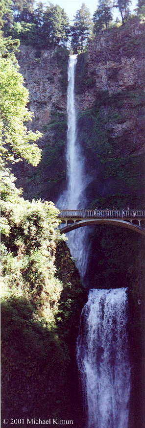 (98K) Scanned photo of beautiful Multnomah Falls in Oregon. Railfans will enjoy the UPRR tracks on the other side of the highway. |