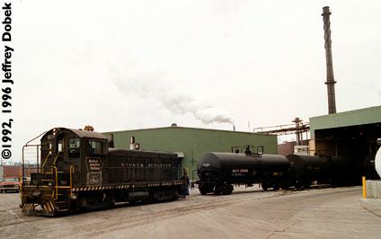 The Hubinger Company's high fructose corn syrup refinery provided considerable business for the KJ. Switched twice a day, seven days a week, many of the cars pulled from this facility were routed via the KJ. |