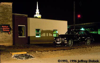 Although the KJRY seldom operated at night it was sometimes possible to catch a unit in the yard after dark. |