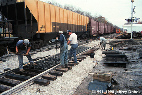 The route 96 crossing project was probably one of the longest in Illinois history. The materials were purchased back in the early 80's when the TP&W still owned the line but were not installed until 1991! |