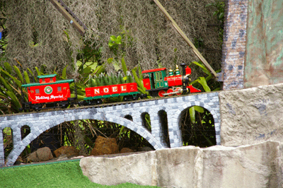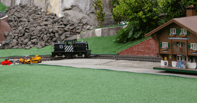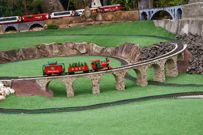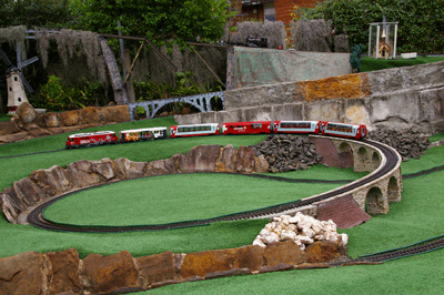 Bryan's railway uses the entire backyard including Barbara's garden area. As well as a great layout to see, courtesy of Bryan, Barbara has produced a beautiful garden full of roses and petunias.