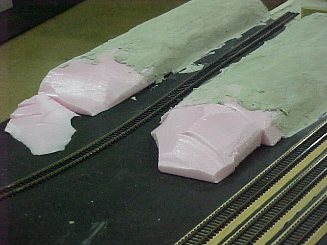 Hills are foam insulation with a covering of Ultracal, a plaster product similar to Hydrocal, but slower-setting. Rocks are also molded in Ultracal. Ground covering and trees are traditional materials. |