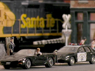 Ever since The California Highway Patrol arrived on the layout, strict vehicular code enforcement has been applied. Major offenses which call for immediate removal of offending vehicle: vehicles with no drivers which have been reportedly zooming down the streets, also vehicles with no interiors. Other infractions include no mirrors, no mud flaps etc. Speeders and drunk drivers better watch out also.