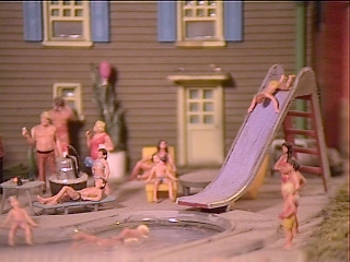 Around them lie suburban housing like this one with a nice pool in the backyard. The further north we travel the newer the buildings and housings become until we reach the construction site where the newest houses are being built where orange groves used to be. Yes there are still some orange groves in California but they they are loosing ground everyday. Sunkist still operates a profitable packing house here and ships out carloads daily when in season. Colorful orange or yellow refrigerated boxcars (refers) from Pacific Fast Freight and the regions railroads are all here.