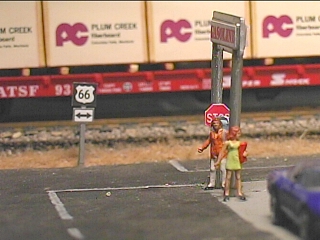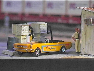 A group of muscle car enthusiasts stop for gas as they cruise route 66. This is the Shell gasoline station which is on old Route 66 in the north end of town. This area is about to be remodeled to make way for wider radius turns on the main line. The eminent domain rights of the railroad mean that this gas station might have to go. If after the remodel there is still some room for it, it will be up graded with better gas pumps.