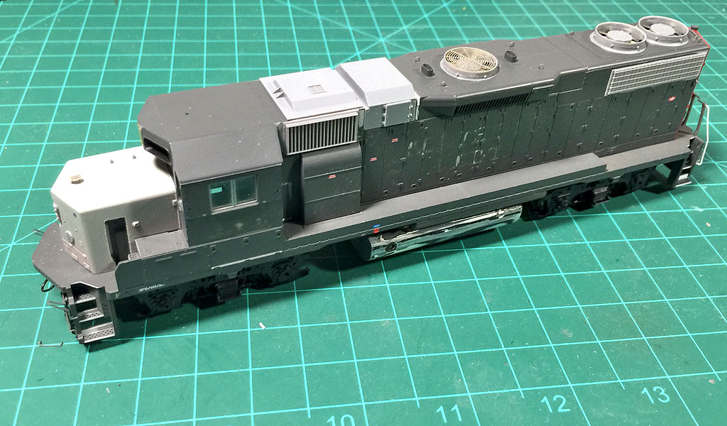 | Starting point: LifeLike Proto2000 SP GP38-2. These locomotives out of the box didn't even come close to SP as delivered GP38-2s, instead, represented the ex L&N/HELM leasing units. I've been modifying this locomotive for a while now. It has had a lot of challenges since the dimensions are off by 6" scale in overall hood height. This meant using a Cannon Nose/Cab/Sub Base was out the window. There has been a lot of modifications made to the stock components to better match the HLCX 3815.