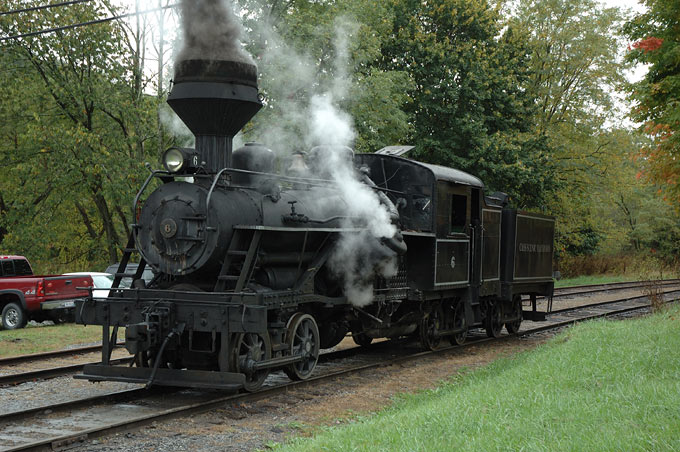 Shay number 2 and the train pulled up to the station and the Heisler was coupled on, then the passengers were boarded and we were on our way to Bald Knob. This little switcher was parked near the Cass Shop.