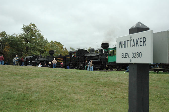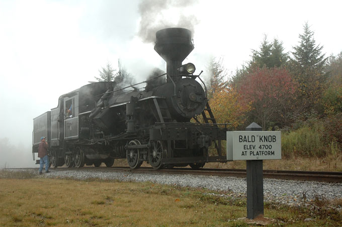 After nearly two and a half hours, we finally reached the summit at Bald Knob. There, the Heisler was cut off and ran back down the mountain, as it would not be needed on the train anymore.