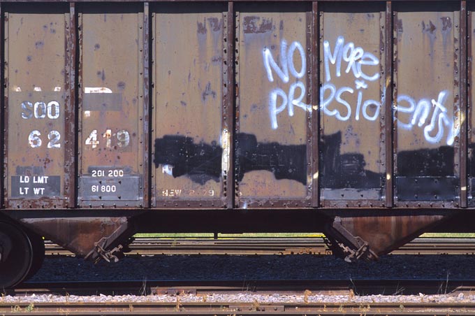 This graffiti on a hopper car caught my eye.