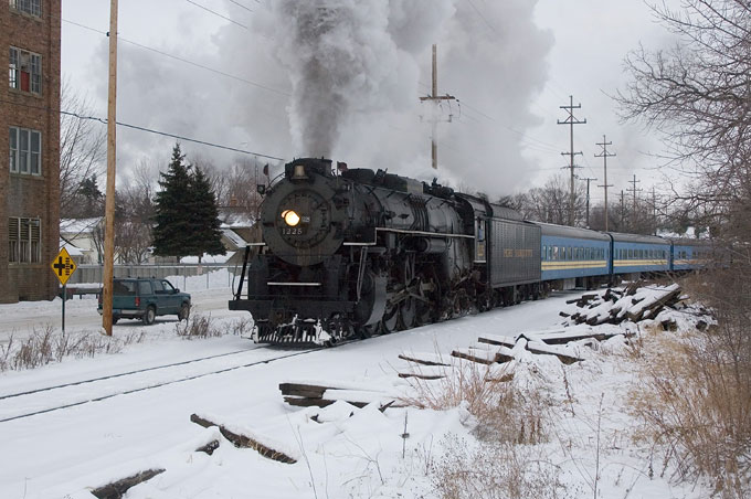 With whistle wailing, PM 1225 leaves Owosso bound for the "North Pole."