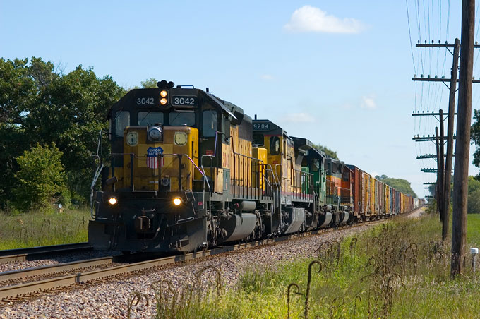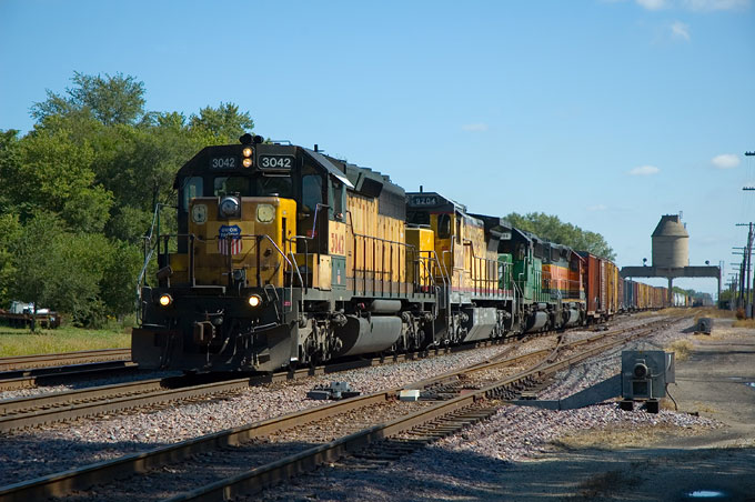 Next we went to the former C&NW in Dixon and along came this westbound merchandise train with a former C&NW SD40-2 leading.