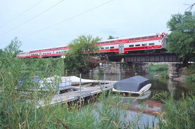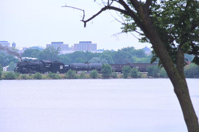 The 1003 soon departed with its train. Here it is crossing Lake Monona.