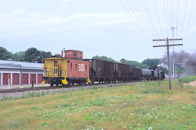 skies to find Soo 1003 in the yard with a demonstration freight train