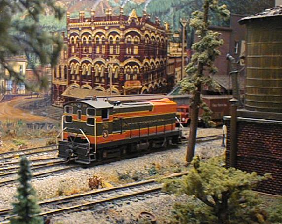 | Baldwin S-12 Diesel switcher #26 is an Athearn model, custom painted, and fitted with a Proto-Power West "switcher" chassis featuring a NWSL "magic carpet" motor with additional gear reduction. |