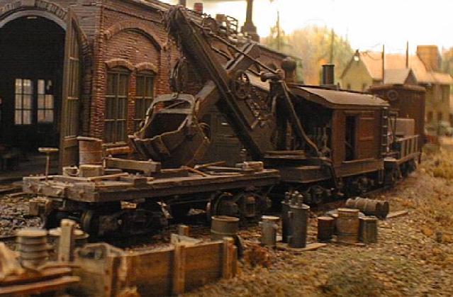 | The Marion steam shovel is a Rio Grande Models kit, built as a standard gauge shovel, and modified a bit to match various photos I have. It's freelanced, but typical of many such small RR shovels. It won "Best MofW" model at a regional NMRA meet. |