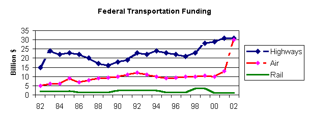 “The federal government spends on highways because it realizes that maintaining road infrastructure is serious business. Yet it treats requests for rail infrastructure improvement as if they're a joke.”   -Baltimore Sun, 1-18-02