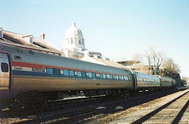 Passengers board Amtrak's St. Louis to Kansas City train at the St.