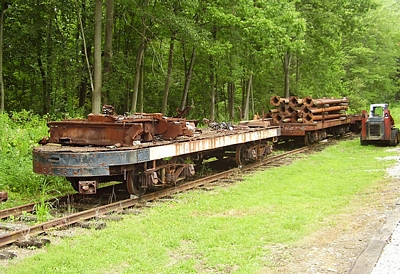 Cleveland Railways work flat cars 615 and 611 at the Northern Ohio Railway Museum.