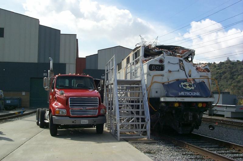 On January 28, 2000 a tractor-trailer rig hauling an oversized oil refinery processor part got stuck on the tracks and was hit by a Metrolink train. Metal debris was scattered for a block and several wheels on the train were derailed. The flatbed of the trailer hit the lower part of the engine and the load smashed into the engineer's compartment. At the time of this writing, there have been five separate train vs. tractor-trailer incidents involving Metrolink trains in the last three months throughout the Southland, a significant increase from the prior 24 months when there was only one such incident throughout an almost two year period. |