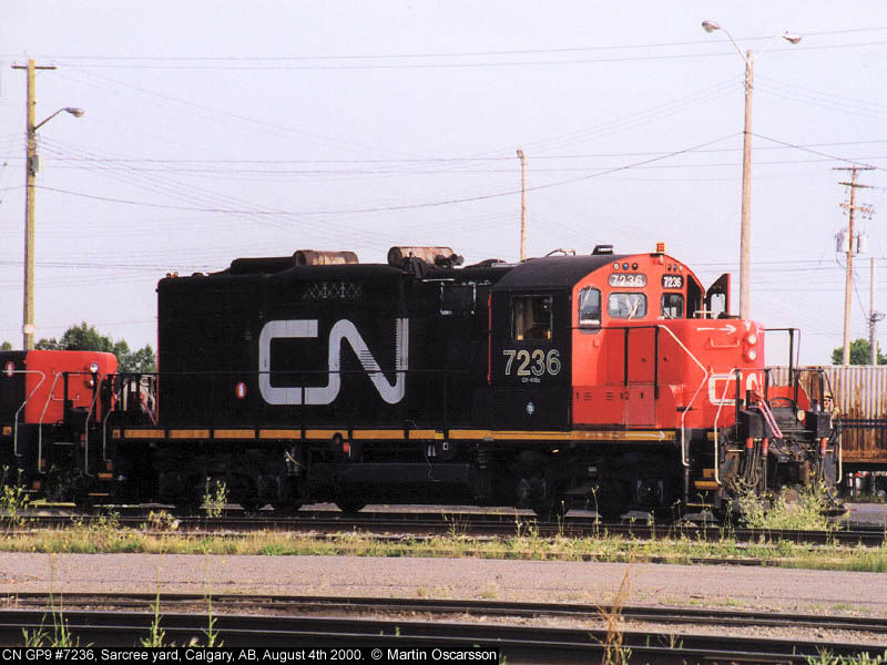 GP9 #7236 at Sarcree yard, Calgary, AB, August 4th 2000.