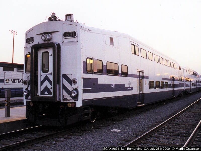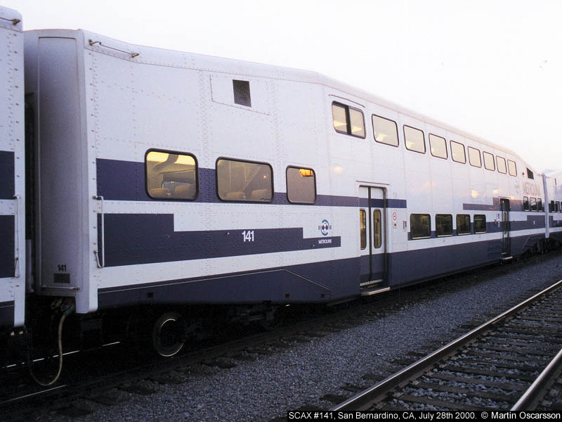 Metrolink coach #141 at San Bernardino, CA, July 28th 2000. |