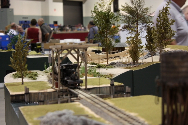 This module is a 180 degree turn that contains a ship being built. It has home made figures and there are many small details included in the scene.